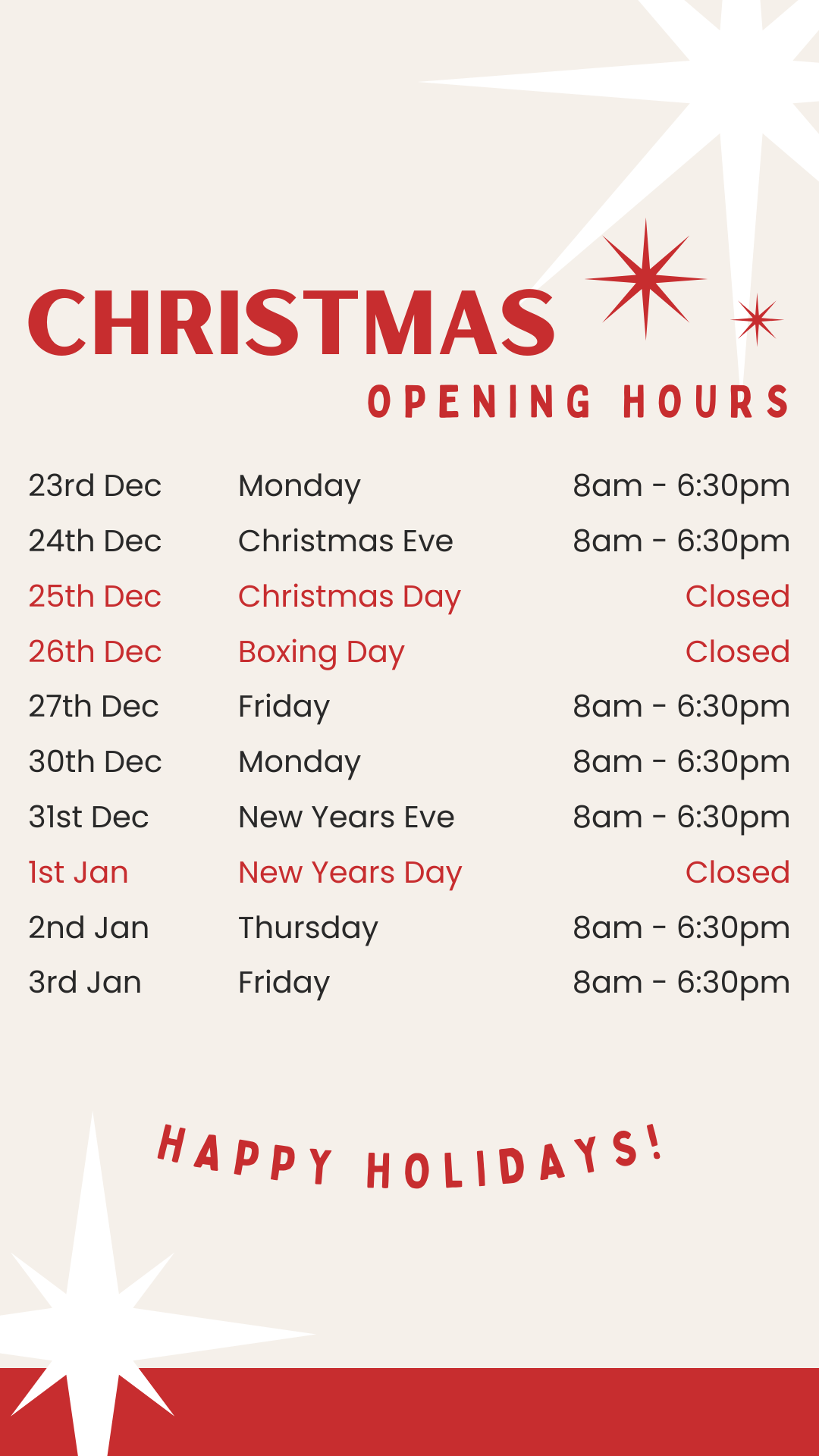 As the festive season approaches, we want to ensure you know when we’re open to support your healthcare needs.