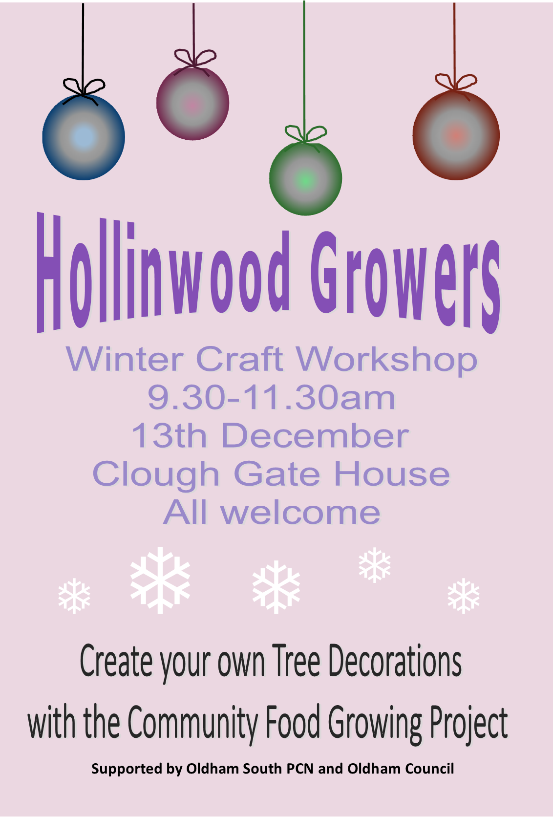 Come along to Hollinwood Growers Winter Craft Workshop at Clough Gate House 13th December 09:30 – 11:30